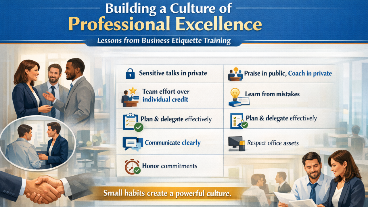 Recently, we conducted an Business Etiquette Training session for our team members, and the conversations were both practical and powerful. The focus was simple: how everyday actions shape culture and drive performance.