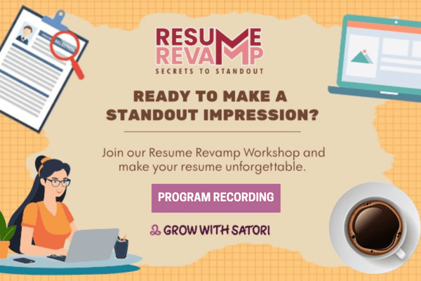 Grow with Satori presents the art of transforming the “unknown” into the familiar: Resume Revamp: Secrets to Standout. Your resume is your first virtual handshake; make it leave a lasting impression.